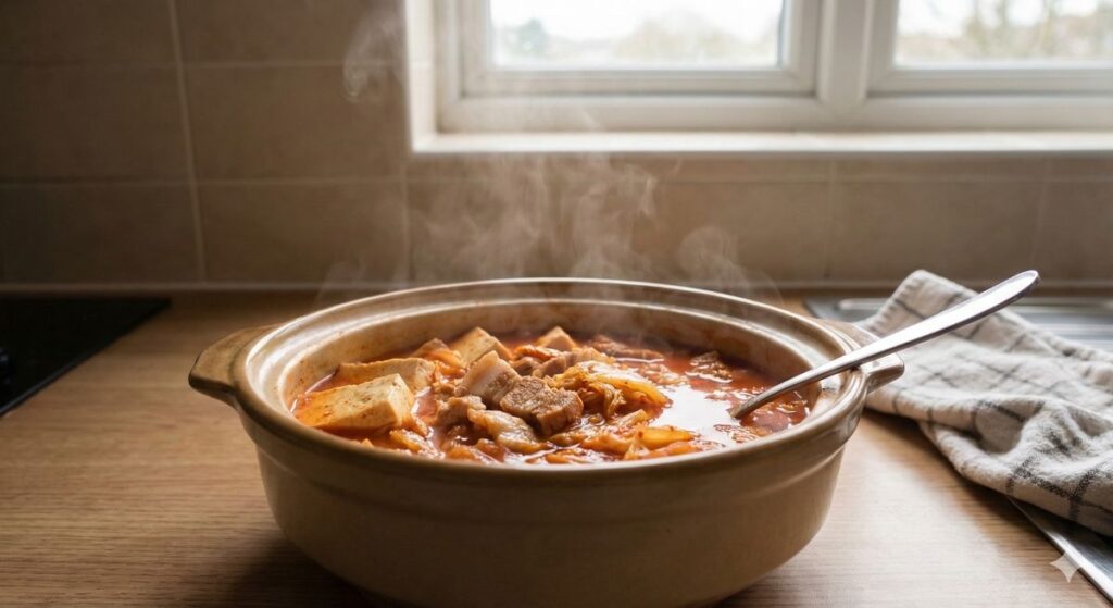 Made with well-fermented kimchi, tofu, and pork (or alternative protein), this stew delivers deep umami, gentle acidity, and warming spice.